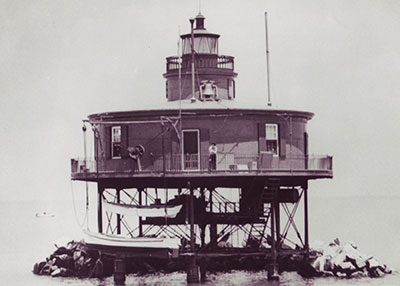 Seven Foot Knoll Lighthouse as it appeared during the time that Thomas J. Stenhise was the keeper there from 1930 to 1941. (Lighthouse Digest archives.) Back to the edition of: Jan/Feb 2017