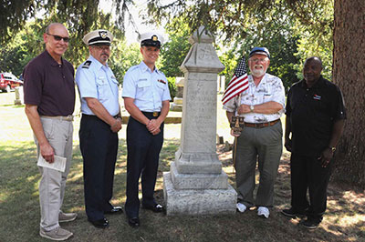 Just prior to placing the U.S. Lighthouse Service Memorial Keeper Marker at the grave site of lighthouse keeper James Donahue these folks took a moment to pose to save this historic moment for posterity. Left to right are: George Sleeper, South Haven City Council member; Robert Kent, U.S. Coast Guard Auxiliary; Keinyn Hudson, Technician Second Class, U.S. Coast Guard; Joe Foster, Historical Association member and Copy Editor for Lighthouse Digest; and Pastor Bobby Walker of South Haven. Back to the edition of: Sep/Oct 2018