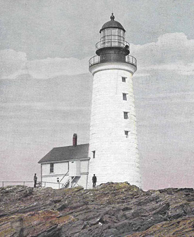 One of the two people shown in this vintage image of Halfway Rock Lighthouse might have been Harold Hutchins. Back to the edition of: Sep/Oct 2018