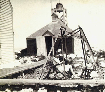 Sitting on the swing at Boon Island Lighthouse are unidentified friends of lighthouse keeper Harold Hutchins. Keeper Hutchins’ children are shown on the other side. Daughter Shirley is closest to the camera and daughter Hattie is behind her. (Photo courtesy The Kelly Family.) Back to the edition of: Sep/Oct 2018
