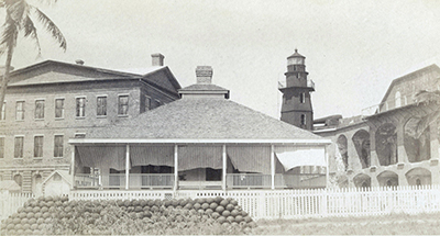 Historic image of the Tortugas Harbor Lighthouse and the lightkeeper’s house. Notice the large number of cannon balls piled up in front of the house. Also, if you look closely, you will notice a cannon sitting to the right of the light tower. When the house was destroyed by fire in 1912, the lighthouse was automated. (Lighthouse Digest archives) Back to the edition of: Jan/Feb 2021