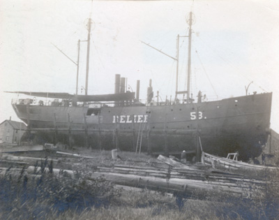 Undated photo of the Relief Lightship LV 58 when it was hauled up on rails for repairs at Fairhaven, Massachusetts. (Lighthouse Digest archives.) Back to the edition of: Jul/Aug 2013