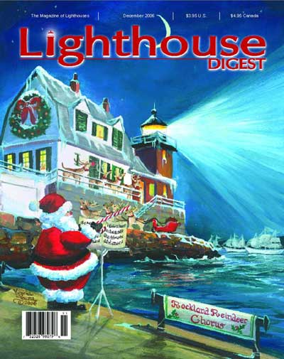 December 2006 This month's cover is from a painting of the Rockland Breakwater Lighthouse in Maine by Virginia Souza of Wells, Maine. The lighthouse is being restored by the Friends of Rockland Breakwater Light, a Chapter of the American Lighthouse Foundation. Prints, ready for framing are available from FogHorn Publishing for $12.95 plus $5 shipping by calling 1-800-668-7737 or online at www.FogHornPublishing.com. click here to buy.