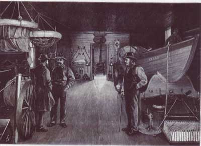 Interior of the Fletcher’s Neck life Saving Service Station, Biddeford Pool, Maine as it appeared in 1886. The station still stands today and is privately owned. Back to the edition of: June 2009