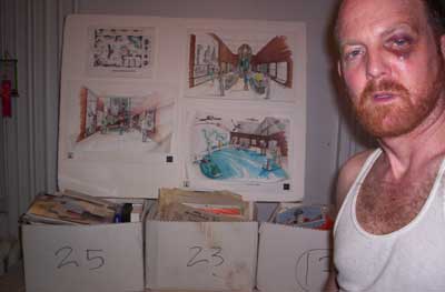 Ron Meisels sporting a black eye and head wound with some of the items he recovered form the trash at the offices of the National Lighthouse Museum. Some of the items here show the plans for the exhibits that were being developed. Meisels was only able to recover a small number of items and boxes. What was in boxes 1-16 and 18-22? Was there a box 24 and 26 and beyond? We will never know. Back to the edition of: October 2009