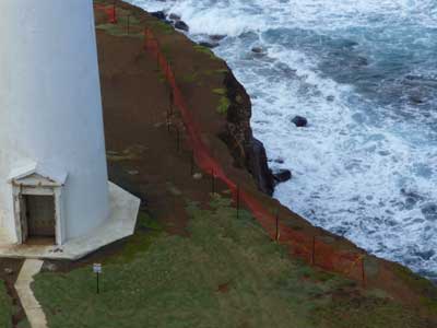 The base of the Kauhola Lighthouse is 20 feet away from the edge of the eroding cliff. (Photograph courtesy Chief Steve Tanaka, USCG.) Back to the edition of: December 2009
