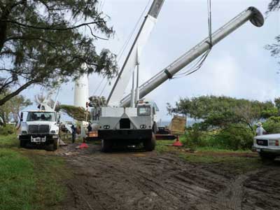 The new Kauhola Point Lighthouse being raised to an upright position. (Photograph courtesy BMCS Dave Garrett, USCG.) Back to the edition of: December 2009