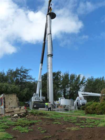 The new modern structure that will now become the Kauhola Point Lighthouse is almost in place. (Photograph courtesy BMCS Dave Garrett, USCG.) Back to the edition of: December 2009