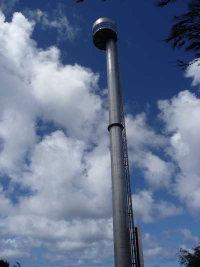 This new and very modern structure has replaced Hawaii’s Kauhola Point Lighthouse. No enclosed spiral staircase here; just a ladder going straight up. (Photograph courtesy Chief Steve Tanaka, USCG.) Back to the edition of: December 2009