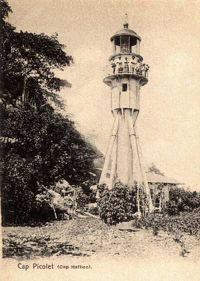 The Pointe Picolet Lighthouse (Cap Picolet), in Haiti, shown here from a vintage postcard, was built in 1895 and has been abandoned for many years. Today it sits as a rusting tower from another era. (Image courtesy of Michel Forand.) Back to the edition of: March 2010