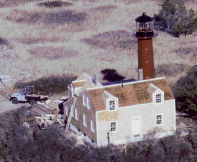 If you look closely you will notice the extent of the amount of work being done to the keeper’s house at Monomoy Point Lighthouse in this 2003 photograph. Back to the edition of: April 2010