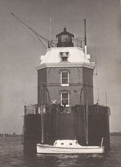 The 1883 Sandy Point Shoal Lighthouse in the Upper Chesapeake Bay near Skidmore, Maryland where Wilson Rawls was stationed in the 1940s. The lighthouse was automated in 1963. In late 1979 some moronic idiots broke into the lighthouse and smashed the 4th order Fresnel lens to smithereens. They were never caught. In 2006, under the National Historic Lighthouse Preservation Act, the lighthouse was auctioned off to a private owner for $250,000. (Lighthouse Digest archives.) Back to the edition of: Sep/Oct 2016