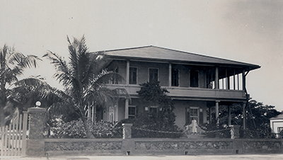 In 1920, the Dillon family moved to Puerto Rico where Frederick took the post as the Superintendent of the 9th district. Of his home, he wrote, “The San Juan Lighthouse Depot where our family lived in the Superintendent’s dwelling was a level, low-lying area of some ten acres and it was the outer portion of La Marina or the old Spanish Naval Station. The dwelling was located back from the beach among a scattering of acacia, palm and aguacate trees and other tropical vegetation. Behind it were a servant’s dwelling, wash house, chicken house and yard, and a garage for the depot truck. A rubble stone fence separated it from the depot area.” Frederick’s son Merrill is shown on the veranda with the local nanny who was employed to help with the children while Frederick traveled throughout the 2000 mile district during the next seven years, inspecting all light stations and buoys and delivering supplies. (Photo courtesy of Frederick P. Dillion III)