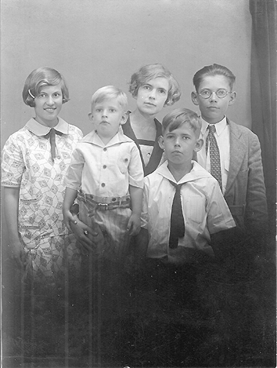 Taken as part of their passport photos for their trip to Europe in 1927, Miriam Dillon is surrounded by her four children (L-R) Kathleen, Fred Jr., Merrill and Scott. Frederick and Miriam had agreed that he would never turn down a promotion, but Miriam was “aghast at the prospect of family life” when Frederick Dillon accepted the position of General Superintendent of Lighthouses that required him to visit every district through years of travel. It was felt that it would be better for her and the children to be on an adventure of their own as Frederick began his new post, so the family left for a year in Europe, which caused Frederick to feel “numb at the prospect for them” as he said goodbye aboard the Cunard Luner at the dock in New York. (Photo courtesy of Frederick P. Dillion III)