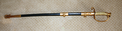 Frederick Dillon writes that in 1939, upon consolidation of the U.S. Bureau of Lighthouses (U.S. Lighthouse Service) with the U.S. Coast Guard “all the former Lighthouse Service personnel had to be in proper uniform and were prescribed a layout of over $800 for uniforms for the Commander Rank, including dress uniforms, overcoats, raincoats, caps, a plumed hat and a ‘seat coat’ such as General Washington used when crossing the Delaware River. Oh, yes, and a beautiful sword [which] I practiced saluting with, putting it back and forth into the scabbard.» The swords had each commander›s name cut into the blade and beautiful etched patterns on the blade and hilt. Grandson Frederick P. Dillon III proudly displays the cherished blade on the wall of his home in California. (Photo courtesy of Frederick P. Dillion III)