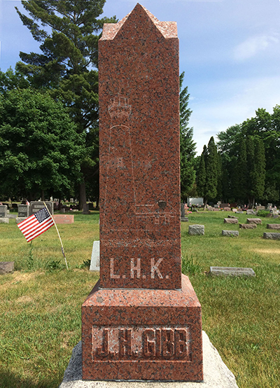 The tombstone of lighthouse keeper Jacob Henry Gibb at the Riverside Cemetery in Vassar, Michigan featured an engraved image of Michigan’s Crisp Point Lighthouse. Underneath the image of Crisp Point Lighthouse are the letters L.H.K., which stands for Light House Keeper, and below that his name J.H. Gibb. Over the years, some government officials must have thought he didn’t know how to correctly spell his name, because they often spelled his last name with an “s” for Gibbs. Back to the edition of: Sep/Oct 2016