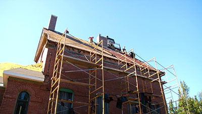Installing the new roof at Squaw Island. (Photo courtesy Corey Adkins 9&10 News.) Back to the edition of: Jan/Feb 2017