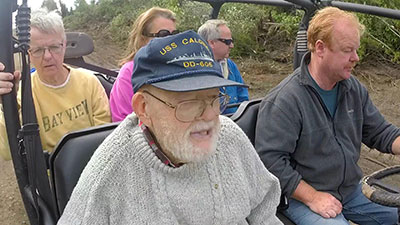 97-year old Tom Child, owner of the Squaw Island Lighthouse, is shown here during his visit this last past November to the island to view the projects being done by the work crew. (Photo courtesy Corey Adkins 9&10 News.) Back to the edition of: Jan/Feb 2017