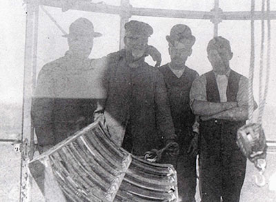 Workmen pose in the lantern of Highland Lighthouse with a panel of the new and second 1st order Fresnel lens as it was being installed in 1901. (Courtesy Kenrick A. Claflin & Son Nautical Antiques.) Back to the edition of: Jul/Aug 2017