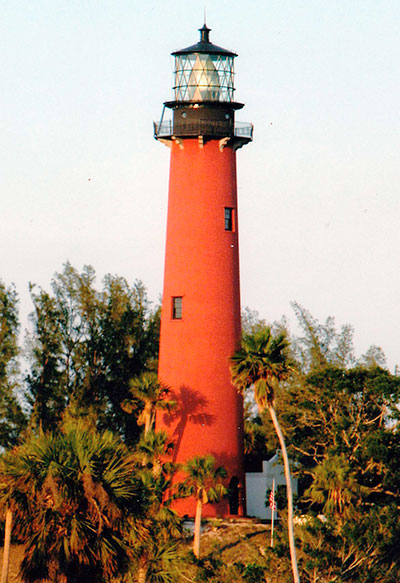 Clearly seen in this image of the Jupiter Inlet Lighthouse is the first order Fresnel lens in the lantern. Back to the edition of: Jul/Aug 2017