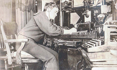 Walter Nathaniel Fanning (John Kofod’s son-in-law), who was responsible for the fire in the attic of Yerba Buena lighthouse, is shown here at work in the Naval Training base at Yerba Buena with his radio equipment.