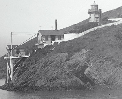 Yerba Buena Lighthouse as it appeared from the water at the approximate time that the Herbert Luff and John Kofod were stationed there. The keeper’s house stood further up the hill. (Lighthouse Digest archives.) Back to the edition of: Sep/Oct 2017