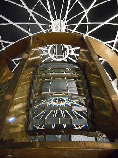 Almost like a kaleidoscope, the beautiful angles of the top of the lantern framework are reflected on the prisms of Cape Elizabeth’s second order Fresnel lens below it. Back to the edition of: Jan/Feb 2018