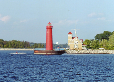 The Muskegon South Pierhead Lighthouse in Muskegon, Michigan. The former Coast Guard Station shown here is now used as the Lake Michigan Field Office of the National Oceanic and Atmospheric Administrations Great Lakes Environmental Research Laboratory. The keeper’s house no longer stands, having been torn down by the Coast Guard. Back to the edition of: August 2010