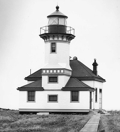 This second lighthouse at Ediz Hook was constructed in 1908 and was a fog-signal building with an attached lighthouse tower. It was designed by famed architect Carl Leick who did 35 lighthouses in the district throughout Oregon, Washington, and Alaska. This particular design was also used in constructing Cape Arago and Mukilteo lighthouses. (Courtesy U.S. Lighthouse Society.) Back to the edition of: Jul/Aug 2018