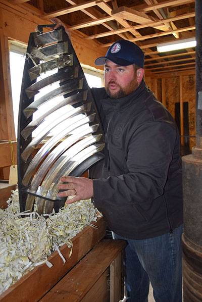 Joe Flemming holding a section of the 3rd order Fresnel lens from Cape Sable Lighthouse. Back to the edition of: Mar/Apr 2019