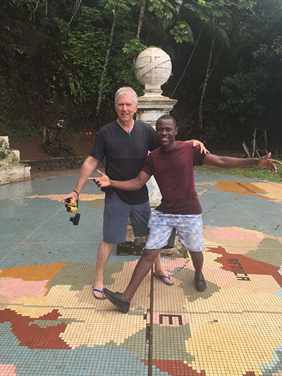 The author and his driver, Luis Miguel, straddle the equator in front of the monument atop São Tomé on the map, just a 100 yard detour on the way from the beach to Ilhéu das Rolas Light. Back to the edition of: Mar/Apr 2019