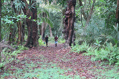 An island fisherman, Toy, on the left, and tour company driver Luis Miguel escort the author through the rain forest to the lighthouse. Back to the edition of: Mar/Apr 2019