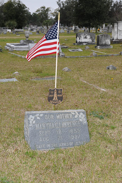 U.S. Lighthouse Service memorial marker at the gravesite of Pensacola Lighthouse assistant lighthouse keeper Martha C. Lawrence. The gravestone is inscribed, “Our Mother . . . Safe In The Arms Of Jesus.” Back to the edition of: Mar/Apr 2019