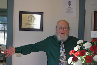 Ron Pesha is shown here just moments after the plaque was unveiled at the West Quoddy Head Lighthouse Visitor’s Center that named the exhibit area The Ron Pesha Lighthouse History Museum. Ron said he had been to many events that honored others, but this was the first time he had been to an event where he was honored. He said, “This is great!” Back to the edition of: Mar/Apr 2019