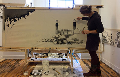 Annie Bailey, a Maine artist, is shown here painting Maine’s Matinicus Rock Lighthouses onto a 60-foot-long piece of sail cloth that is part of her moving panorama depicting the story of lighthouse heroine Abbie Burgess. Back to the edition of: Mar/Apr 2019