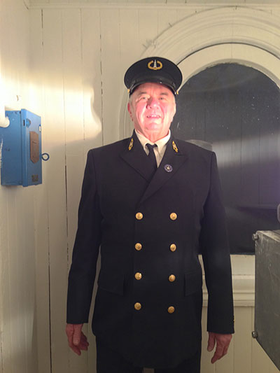 When you visit the Baileys Harbor Range Lights in Bailey’s Harbor, Wisconsin, you may be fortunate enough to run into Ed Miller, who, from time to time, wearing a lighthouse keeper’s uniform, portrays lighthouse keeper Henry Gattie. (Photo courtesy Door County Maritime Museum.) Back to the edition of: Mar/Apr 2019