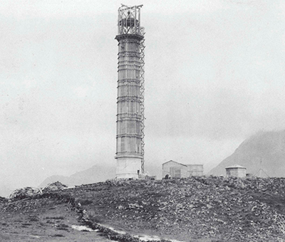 The Moloka’i Light was originally just a red lens-lantern hoisted on a 34’ mast until the tower shown here under construction was established in 1909 with a second order clamshell lens. At 132-feet tall the Molokai’i Lighthouse is the tallest lighthouse in the Hawaiian Islands. (Lighthouse Digest archives.) Back to the edition of: May/Jun 2019