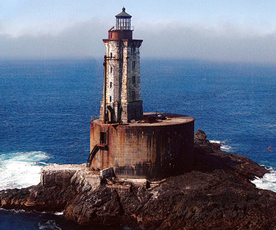 Approaching the St. George Reef Light by helicopter. (Photo by Kiera Giles) When completed in 1892 at a cost of $704,000, it was the most expensive lighthouse ever built by the United States Lighthouse Service. Its original cost would be the equivalent today of $19.5 million. The lighthouse was abandoned in 1975. In 1988 the St. George Reef Lighthouse Preservation Society was formed to try and save the lighthouse. Back to the edition of: May/Jun 2019