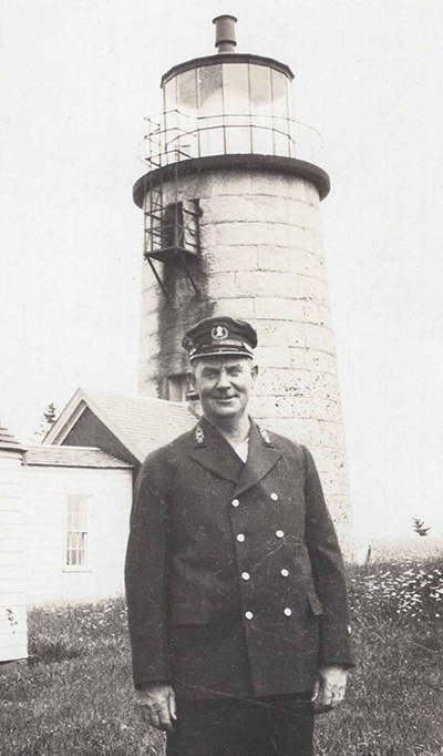 Lighthouse keeper Charles Dyer is shown here at Monhegan Island Lighthouse. He worked under head keeper Merton Tolman at Matinicus Rock Lighthouse as 3rd assistant keeper in 1905, 2nd assistant keeper in 1907, 1st assistant keeper in 1908, and he then became head keeper in 1911 when Merton Tolman resigned, a position that Dyer held until 1916. Charles Dyer later served at Manana Island Fog Signal Station from 1916 to 1924 and then at Monhegan Island Lighthouse from 1924 to 1936. (Courtesy Monhegan Museum.) Back to the edition of: May/Jun 2019
