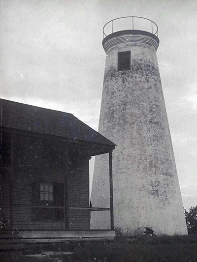 After the East Rigolets Lighthouse was discontinued in 1874, its lantern was removed, leaving an abandoned headless tower. (National Archives photo.) Back to the edition of: May/Jun 2019