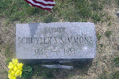 The gravestone of Schuyler S. Simmons. In front of his grave is a small sign encased in plastic that states that he was a lighthouse keeper at Sackets Harbor Lighthouse. (Lighthouse Digest archives.) Back to the edition of: May/Jun 2019