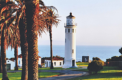 Modern day photo of Point Vicente Lighthouse. Notice that the land side of the lantern is painted a pearl white color so that the flash of the lens would not bother nearby residents who complained about the flash of the light. (Lighthouse Digest archives.) Back to the edition of: May/Jun 2019