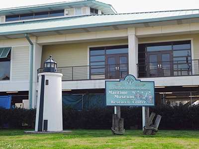 A model of Tchefuncte River Lighthouse stands proudly next to the Lake Pontchartrain Basin Maritime Museum sign signifying the stewardship the museum has over the lighthouse that is a short distance further down the road in Madisonville, Louisiana. Back to the edition of: May/Jun 2019