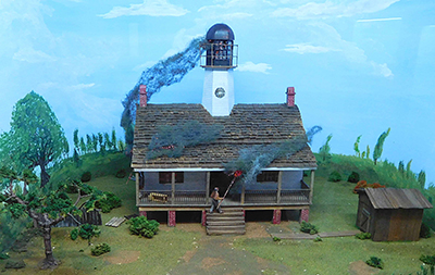 The 1848 Bayou Bonfouca Lighthouse was located inside Lake Pontchartrain at the western edge of Spanish West Florida. As depicted in the diorama, Confederate troops burned the lighthouse down in 1862 and took Keeper Vincenzo Scorza captive. Scorza later escaped, but the lighthouse was not rebuilt. Instead, the Point Aux Herbes Lighthouse was constructed across the lake to take its place. Back to the edition of: May/Jun 2019