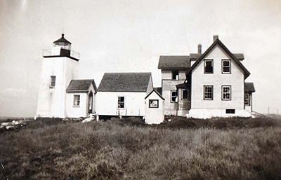 Nash Island Lighthouse as it appeared just before the keeper’s house was burned. The barn and the outhouse shown here were demolished and the debris piled up to be burned before the fire was set to the keeper’s house. Back to the edition of: May/Jun 2019