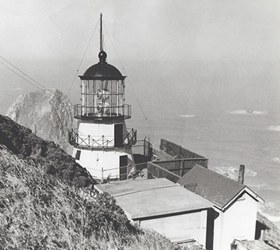 The Cape Mendocino Lighthouse Station as it appeared with its dual aero-beacons that had replaced the 1st order Fresnel lens after it was removed in 1948. (Lighthouse Digest archives) Back to the edition of: May/Jun 2020