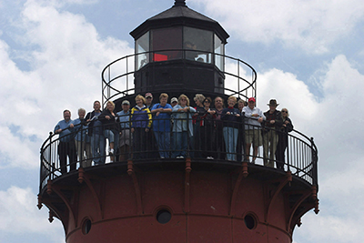 Visitors pose at the top of Delaware Breakwater Lighthouse in 2006 when the nonprofit Delaware River and Bay Lighthouse Foundation conducted the first ever public tour of the lighthouse. (Lighthouse Digest archives photo) Back to the edition of: Sep/Oct 2020
