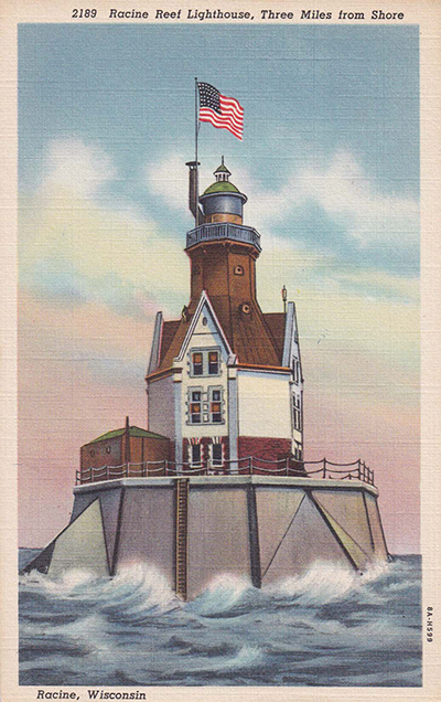 Vintage color post card image of the Racine Reef Lighthouse in Racine, Wisconsin where George Keller started his lighthouse career in 1918. The lighthouse was demolished in 1961. (Lighthouse Digest archives) Back to the edition of: Jan/Feb 2021