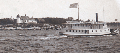 Early 1900s view of Pumpkin Island Lighthouse as a passenger ferry boat cruises by. (Lighthouse Digest archives) Back to the edition of: Mar/Apr 2021