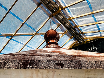 A rarely-viewed close up look at the cupola and ventilator ball of Wisconsin’s Plum Island Rear Range Lighthouse during the restoration of the tower. Back to the edition of: Jul/Aug 2021